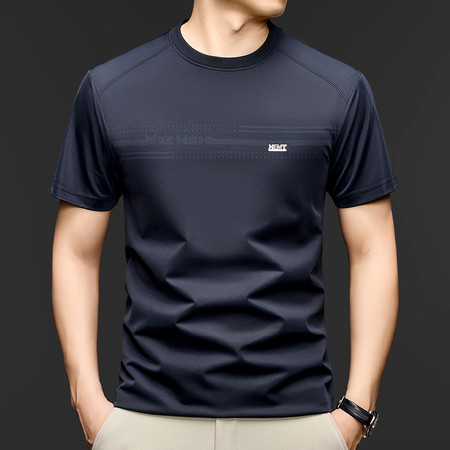 罗蒙衬衫&577650新款抗皱免烫印花短袖衬衫